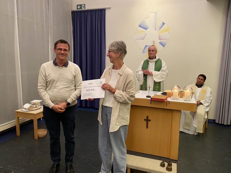 Herr Josef Müller übergab die Spende an Frau Claudia Zähringer, die sich dort ehrenamtlich engagiert. In einer kurzen Ansprache berichtete sie eindrucksvoll, wie die gespendeten Mittel unmittelbar den Kindern zugutekommen. Sie betonte, dass die Unterstützung aus der Gemeinde nicht nur finanziell, sondern auch moralisch von großer Bedeutung sei.