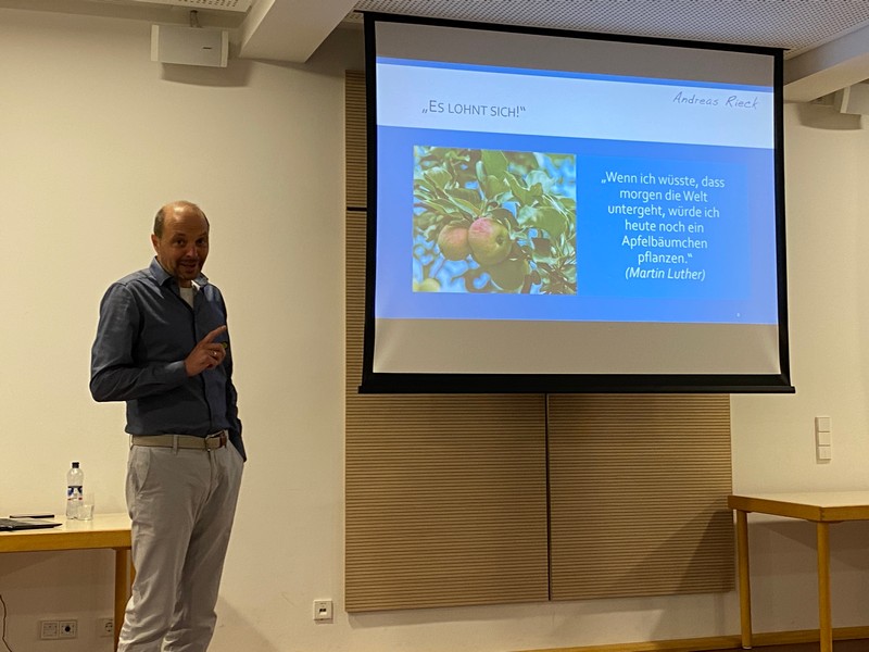 Anhand von Geschichten mit Lebensweisheiten führte er ein, dass vieles in unserer Hand liegt. Dies zu wissen, hilft in Zeiten der Unsicherheit und wachsenden Ängste, wo vieles außerhalb unserer Kontrolle zu liegen scheint. Genau dann lohnt es sich, den Blick auf das zu richten, was wir tatsächlich beeinflussen können. Ganz nach dem Motto Martin Luthers: „Wenn ich wüsste, dass morgen die Welt untergeht, würde ich heute noch ein Apfelbäumchen pflanzen.“