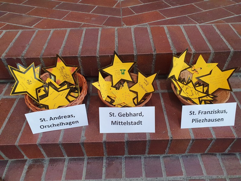 Sie schrieben dies auf einen Papierstern. Diese Sternstunden zieren nun auch unsere Christbäume in den Kirchen. In der Predigt verwies Pfarrer Dietmar Hermann darauf, dass Gott Mensch wurde, damit wir menschlich miteinander umgehen“. Lassen wir so auch andere Sternstunden erleben!