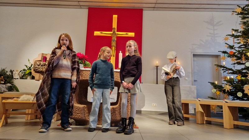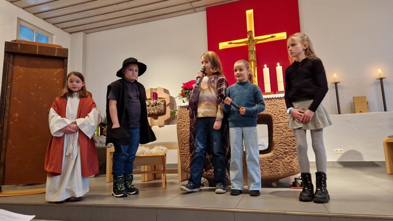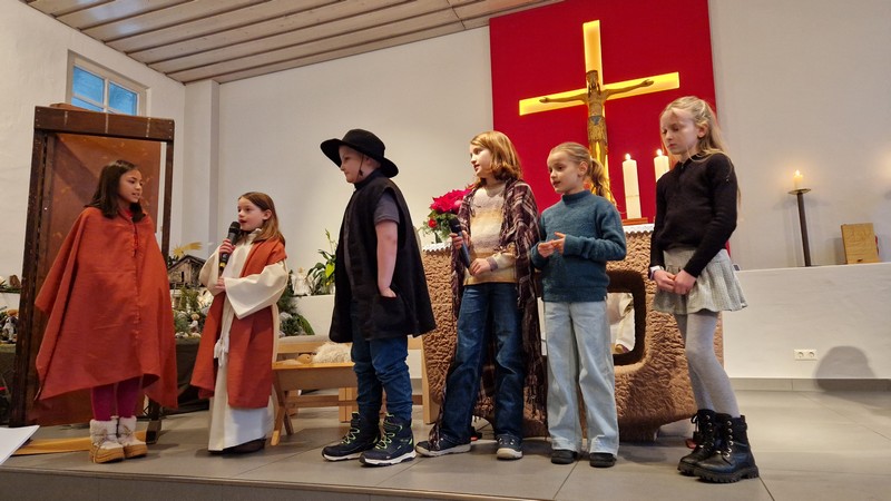 Die 14 Krippenspiel Kinder ließen an Heiligabend das Weihnachtsevangelium lebendig werden.
