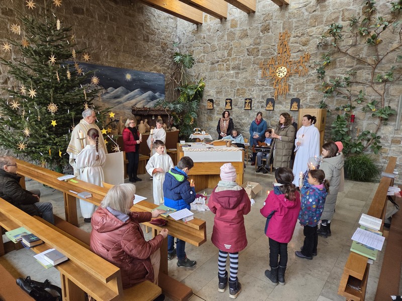 Am Fest Mariä Lichtmess 2026 wurde die Vorabendmesse in St. Andreas als auch der Sonntagsgottesdienst in St. Gebhard als Familiengottesdienst gestaltet. In einer Geschichte „Das Licht in der Halle der Welt“ wurde deutlich: Bis in den letzten Winkel einer Halle reicht die Kraft des kleinen Lichtes einer Kerze.