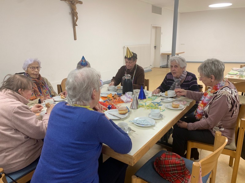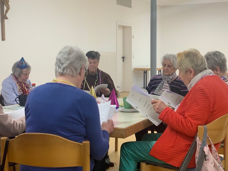 Über 30 Personen kamen in St. Andreas zusammen um mit Kaffee, Berlinern und Fasnetsküchle Fasching zu feiern. Viele waren schön verkleidet und brachten gute Laune mit. Die Tische waren schön dekoriert. Wir durften dieses Mal auch einen Tisch voller Senioren von Jubilate begrüßen, die sich unserem Kreis anschließen wollen.
