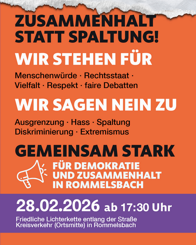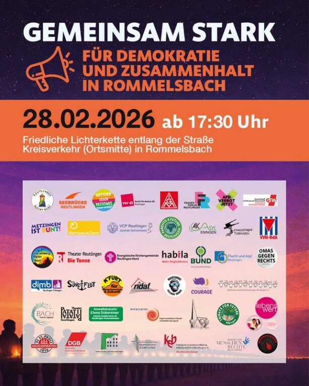 „Gott liebt alle“ wird als Quer-Banner an der ev. Martins-Kirche in Rommelsbach hängen. Das kann ein Treffpunkt in ökumenischer Verbundenheit als Christ*innen sein. Für die Menschen aus Rappertshofen werden noch ein paar Begleitpersonen gesucht. Falls jemand von Orschel-Hagen auf dem Weg an Rappertshofen vorbeikommt (oder 1 Station früher aus dem Bus an der Haltestelle Rappertshofen aussteigen könnte) – dann kann man sich direkt an Frau Preiß wenden: