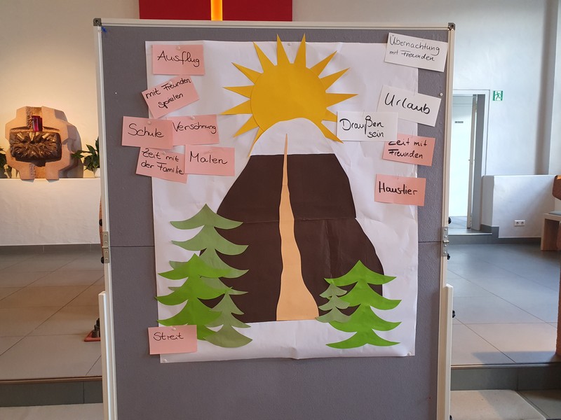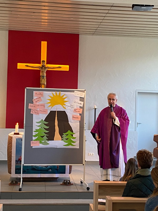 Was dies mit unserem Glauben zu tun hat, wurde dann im Evangelium deutlich, in dem Jesus sich mit drei Jüngern auf den Berg begibt. Im Predigtgespräch wurden die Erlebnisse gesammelt, schöne Momente aber auch was nicht gut war.