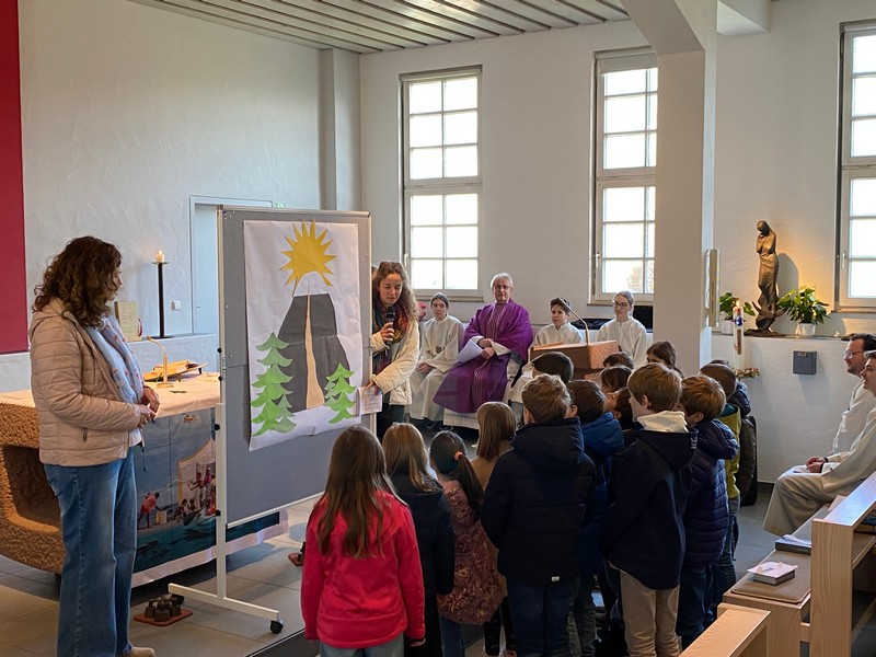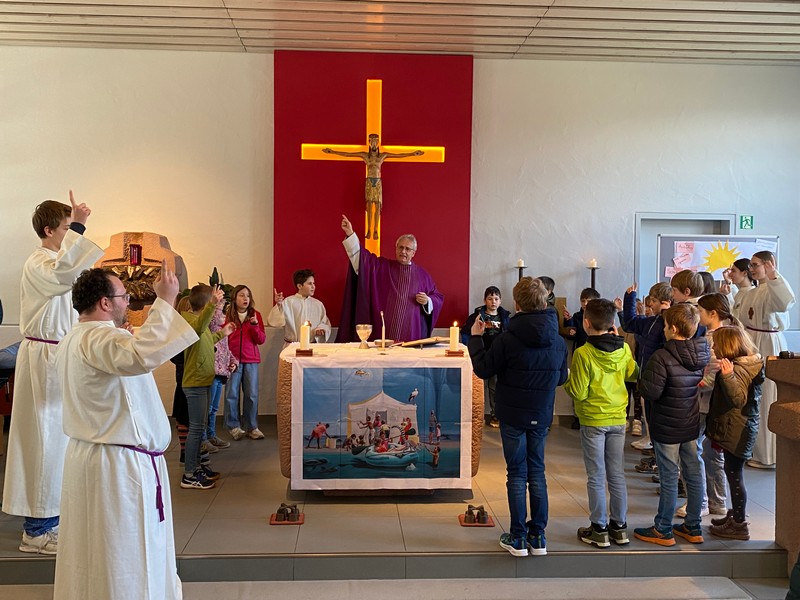 Sowohl am Samstag, 28.2.26 als Vorabendgottesdienst in St. Andreas, als auch in St. Franziksus am Sonntag, wurde der gleiche Gottesdienst gefeiert. Manchmal fühlen wir uns ziemlich unten, weil wir traurig oder müde sind und ein anderes Mal ganz leicht und super. Am Anfang des Gottesdienstes wurde dies sichtbar, die Kinder stellten sich auf die Stufe, wie sie sich gerade fühlen.