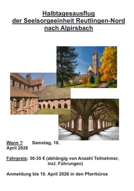 Am Samstag, den 18. April 2026 fahren wir nach Alpirsbach um das dortige bekannte Kloster im Rahmen einer einstündigen Führung zu besichtigen.